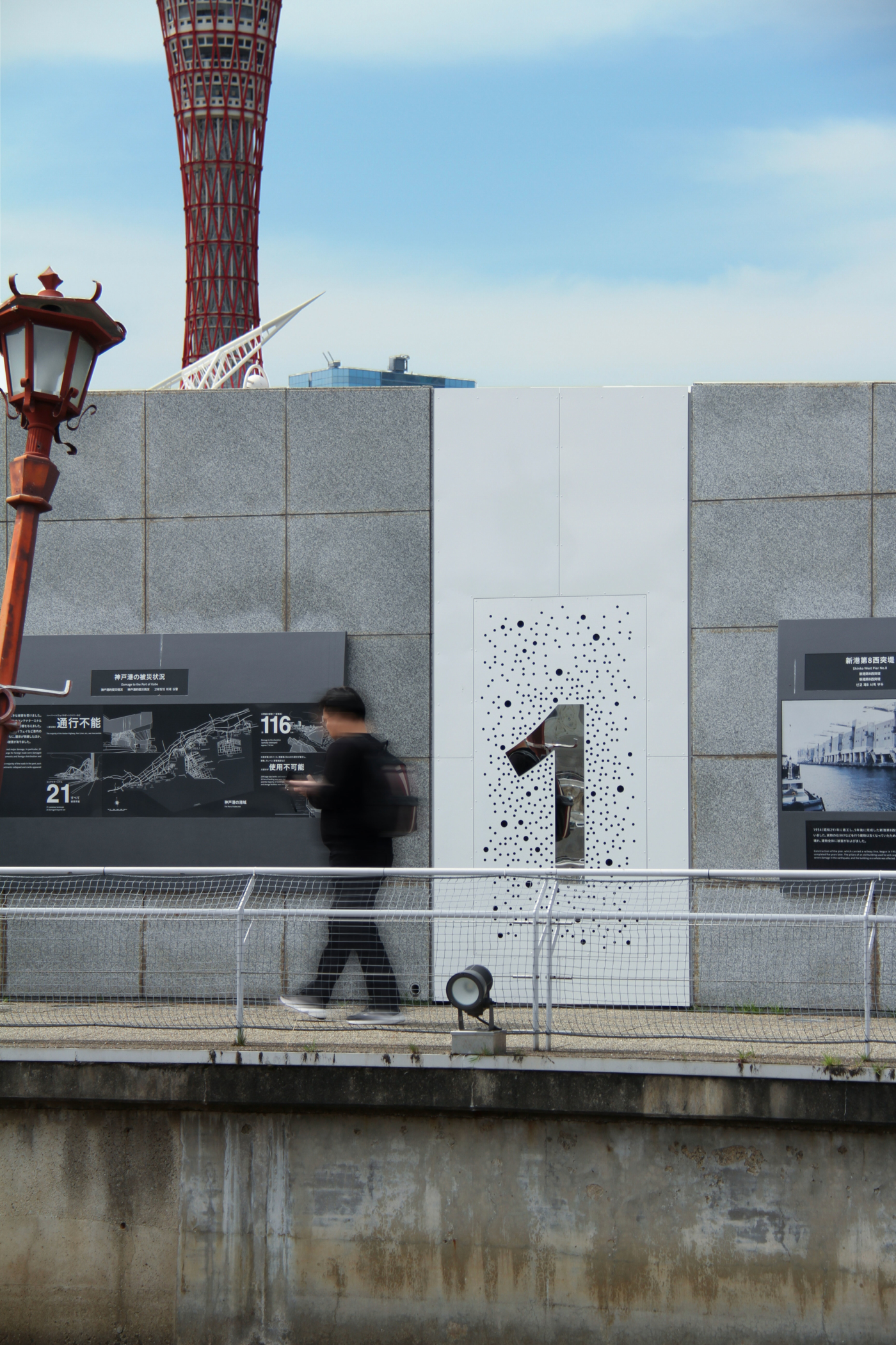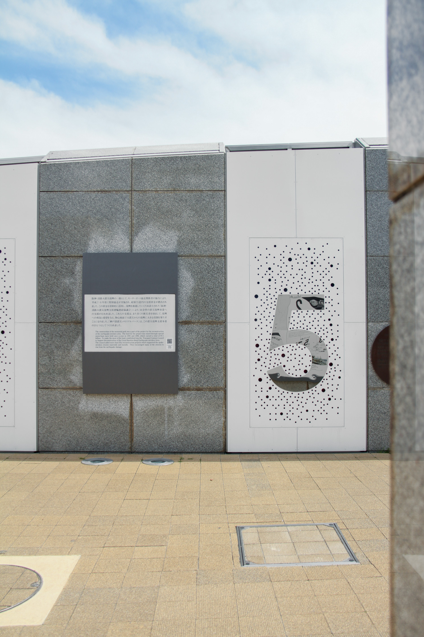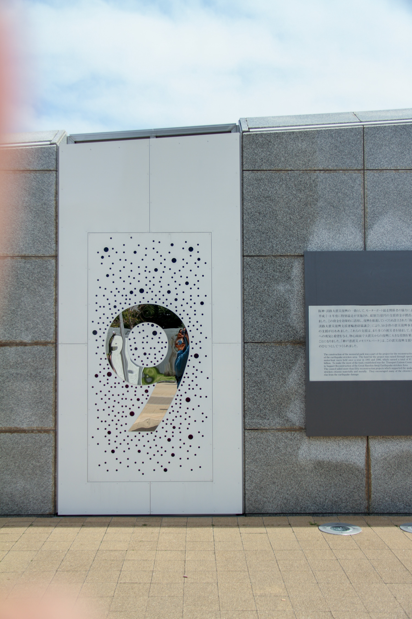 我々は、既存壁⾯の間( 1.5 m)4 カ所に新規造作 パネル 「メモリーウォール(MW)」のデザインを担当し、メリケンパーク側からメモリアルパークへの誘引性の向上を目指しました 。