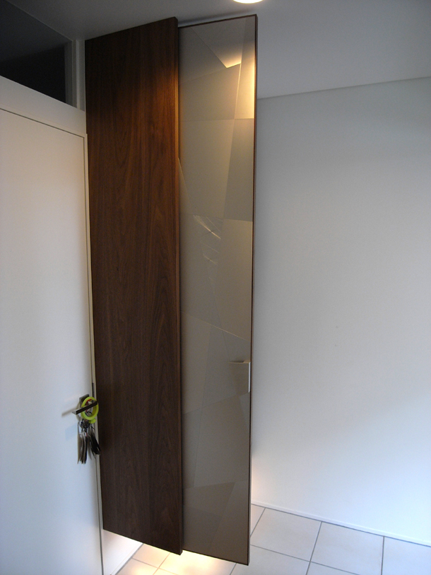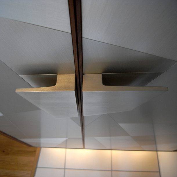 この下駄箱のデザインには「これしかない!」という、引手だと思います。
